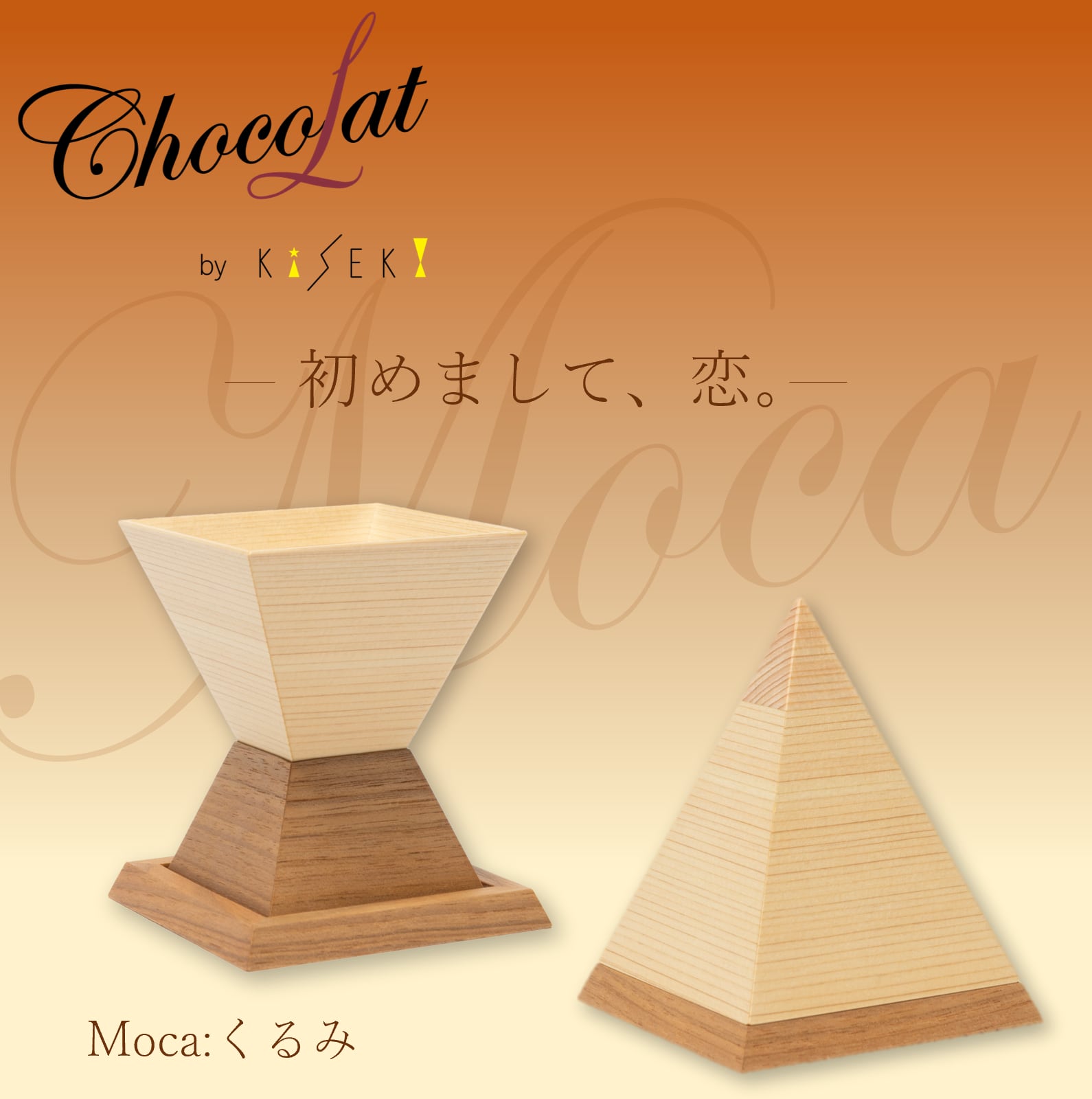 グラスは檜でこれまでのKiSEKIのように心地の良い香りを愉しめ、グラス以外のパーツを胡桃で作る事で胡桃ならではの暖かな印象がペアで愉しむ時間を優しく包みこんでくれます。